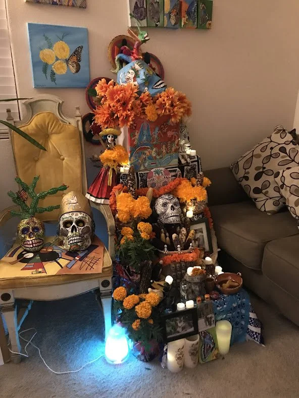 Altar 2020, This was the year of the pandemic, and I did the altar in my home, showing it to students on Zoom. Location: Virtual