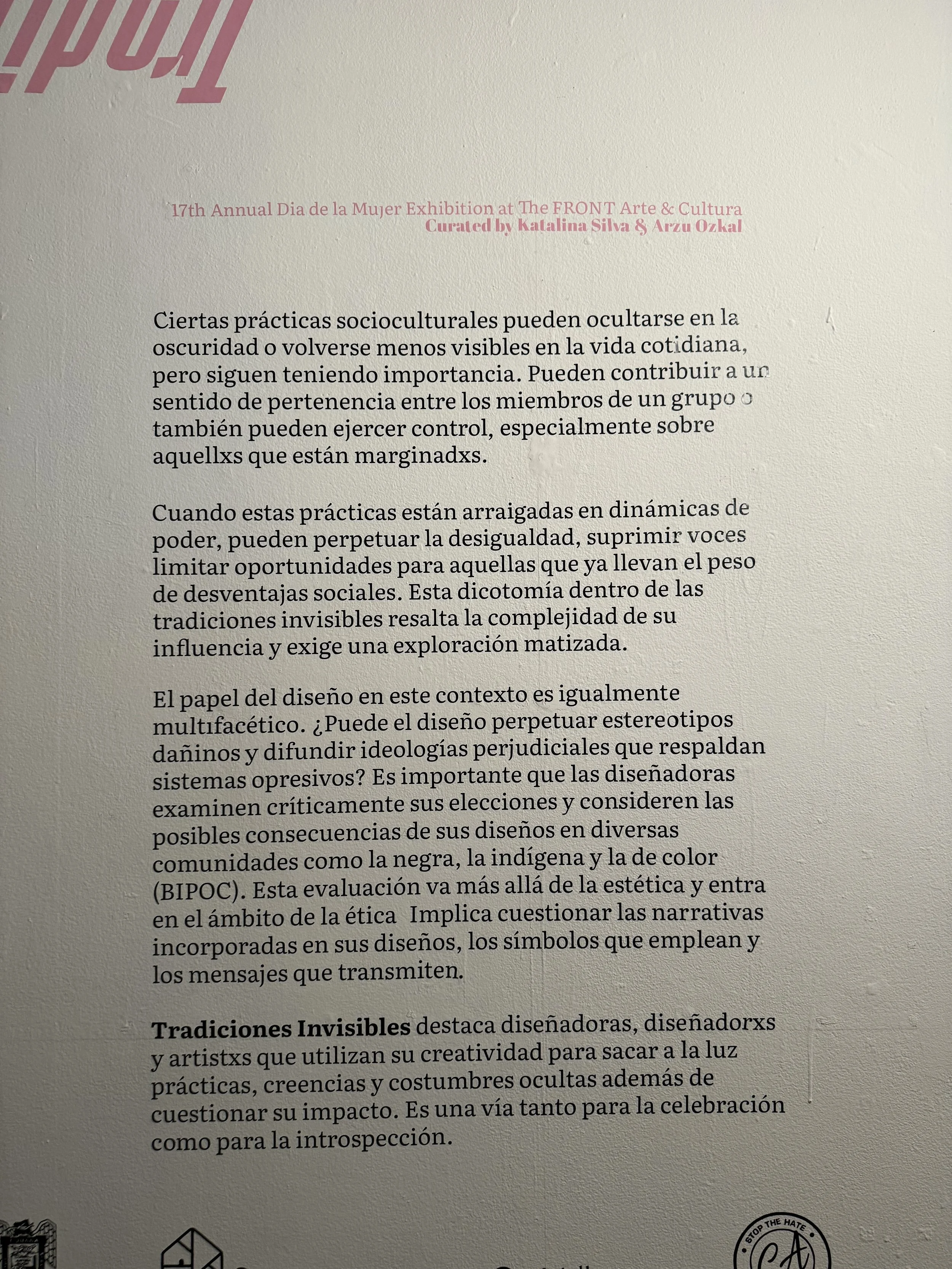 Our skirts were selected for an exhibition called Tradiciones Invisibles/Invisible Traditions for the International Women’s Day. The skirts were shown from March to May at The Front Gallery in San Ysidro. Here are some photos of the inauguration on March 9th.