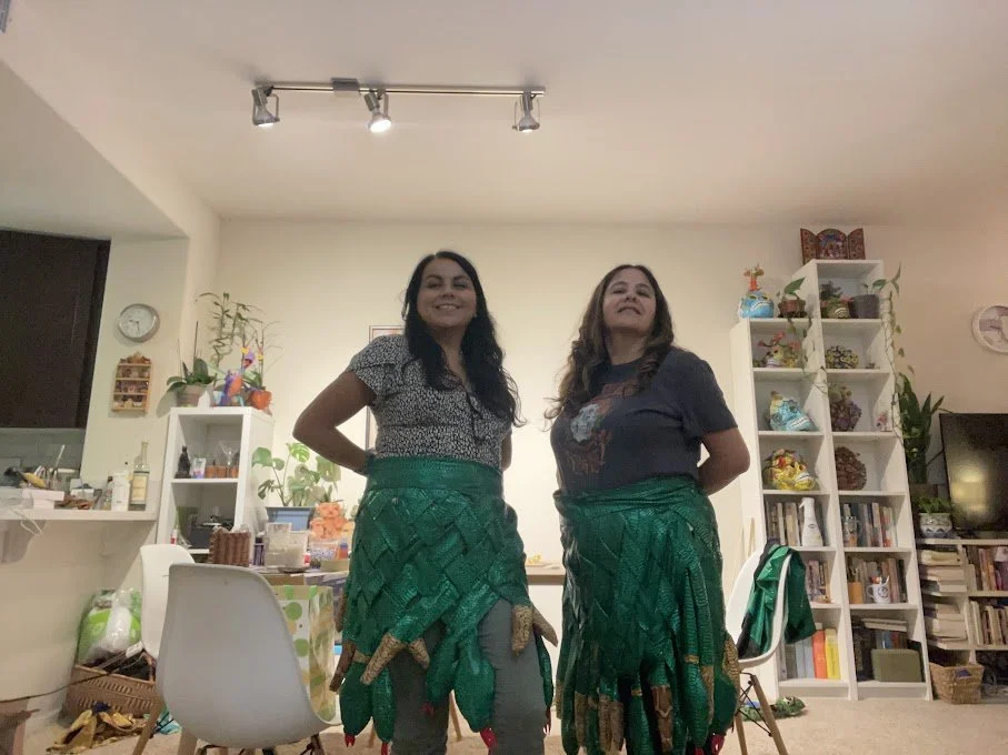 Antonieta y Alejandra han sido amigas desde hace más de veinte años, y Antonieta la invitó a unirse al proyecto y entre las dos imaginaron lo impactante que sería poder ponerse esas faldas que ya construían en su imaginación. Como buena Antropóloga Cultural entrenada en la Escuela Nacional de Antropología e Historia en México y en UC Santa Cruz, Alejandra utilizó un viaje que hizo a la Ciudad de México ese verano para ir a ver a la Coatlicue en persona y trajo una imagen que adquirió en la tienda del museo. Alejandra trajo consigo la experiencia de ver el monolito de la Coatlicue con los ojos de la creatividad, y comunicarle esto a Antonieta las hizo empezar a crear las faldas.